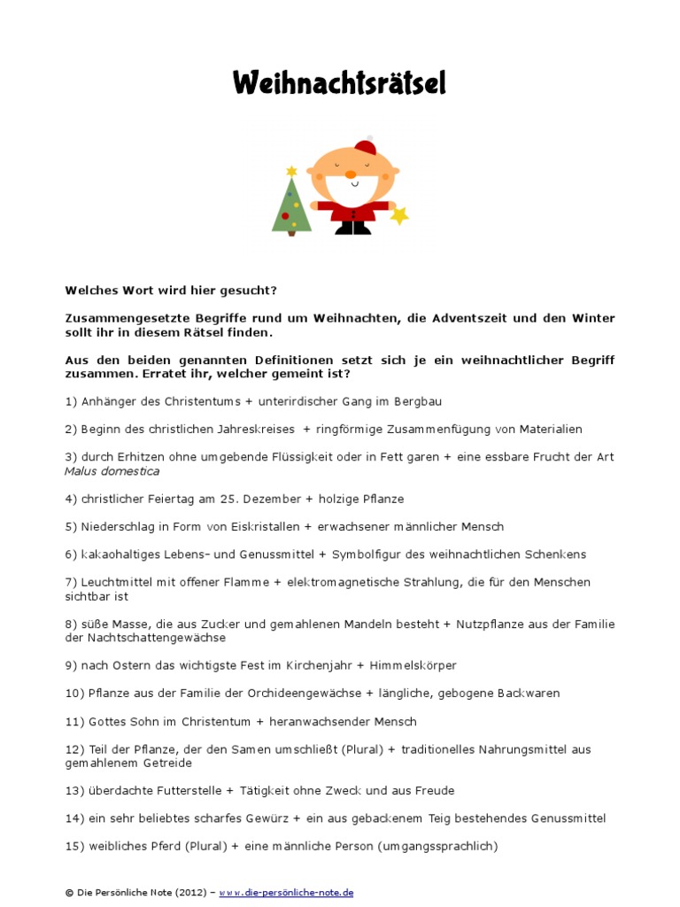 Weihnachten bietet ein großes spektrum an möglichkeiten, seinen gedanken freien lauf zu lassen. Mit diesem weihnachtsquiz zum ausdrucken testest du, was deine familie und freunde wirklich über das frohe fest wissen: Weihnachtsquiz mit fragen und antworten. Nach jeder frage kommt sofort die auflösung mit der richtigen antwort. Entwickeln sie logik und denken über 3.500 rätselfragen, aufgaben und knobelaufgaben für erwachsene von ganz leicht bis schwer! Im nächsten quiz haben wir tolle, lustige quizfragen zu weihnachten zusammengestellt, die sie zum teil mit verblüffenden antworten überraschen werden. Nicht weil ich die fragen für den fremdsprachenunterricht passend finde (einige sind sogar sehr schwer), sondern weil die idee mir sehr gut gefällt. Sie sind also bestens vorbereitet. Die rätsel zu weihnachten jetzt gratis downloaden und in der grundschule oder zu hause verwenden. Die vorfreude in der weihnachtszeit auf den 24. Zum ausdrucken, vorlesen und nachdenken. Es ist kein schönes thema, aber viele pflegebedürftige erwachsene benötigen nun einmal windeln für erwachsene, weil sie körperlich beeinträchtigt sind. In der mexikanischen stadt oaxaca wird bereits am 23.